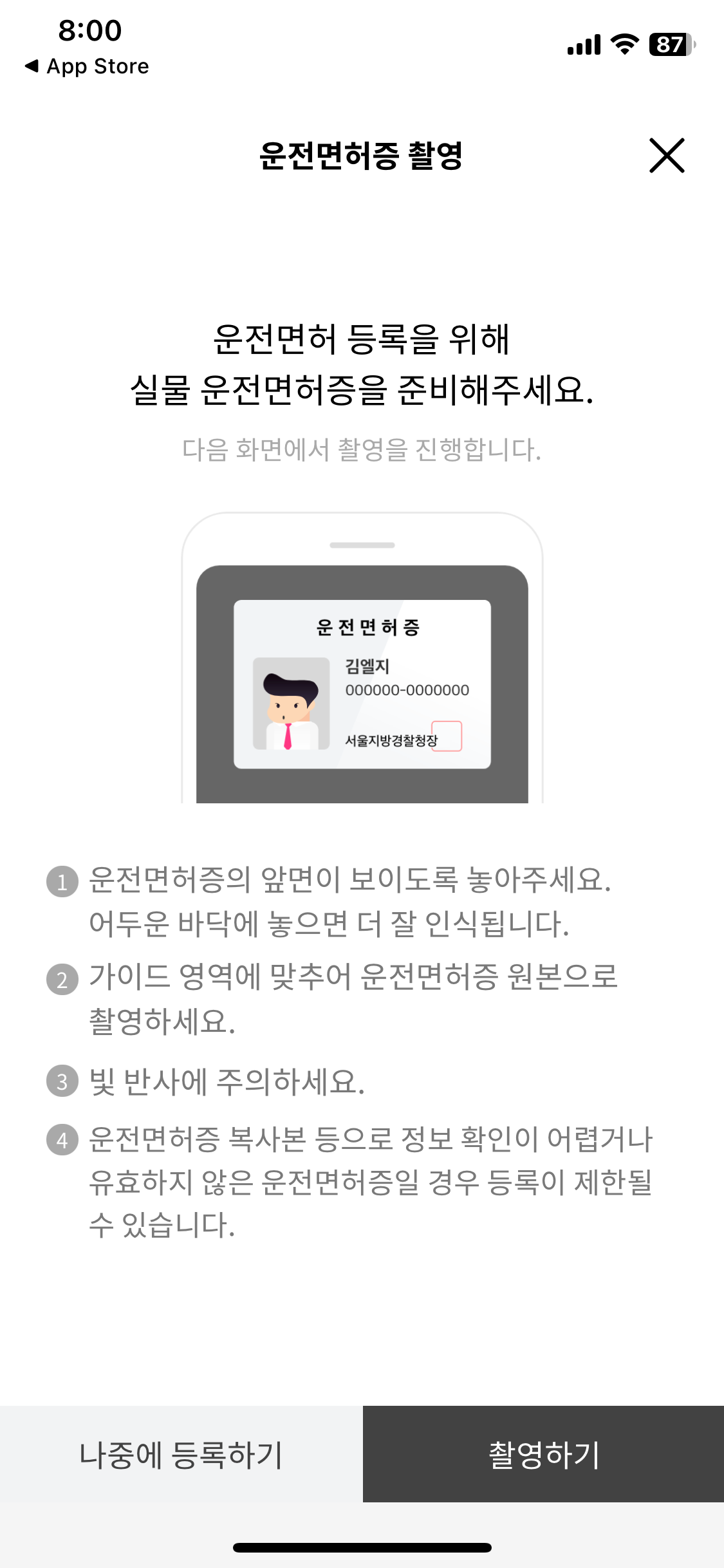 - ‘운전면허증 등록’ 메뉴 선택