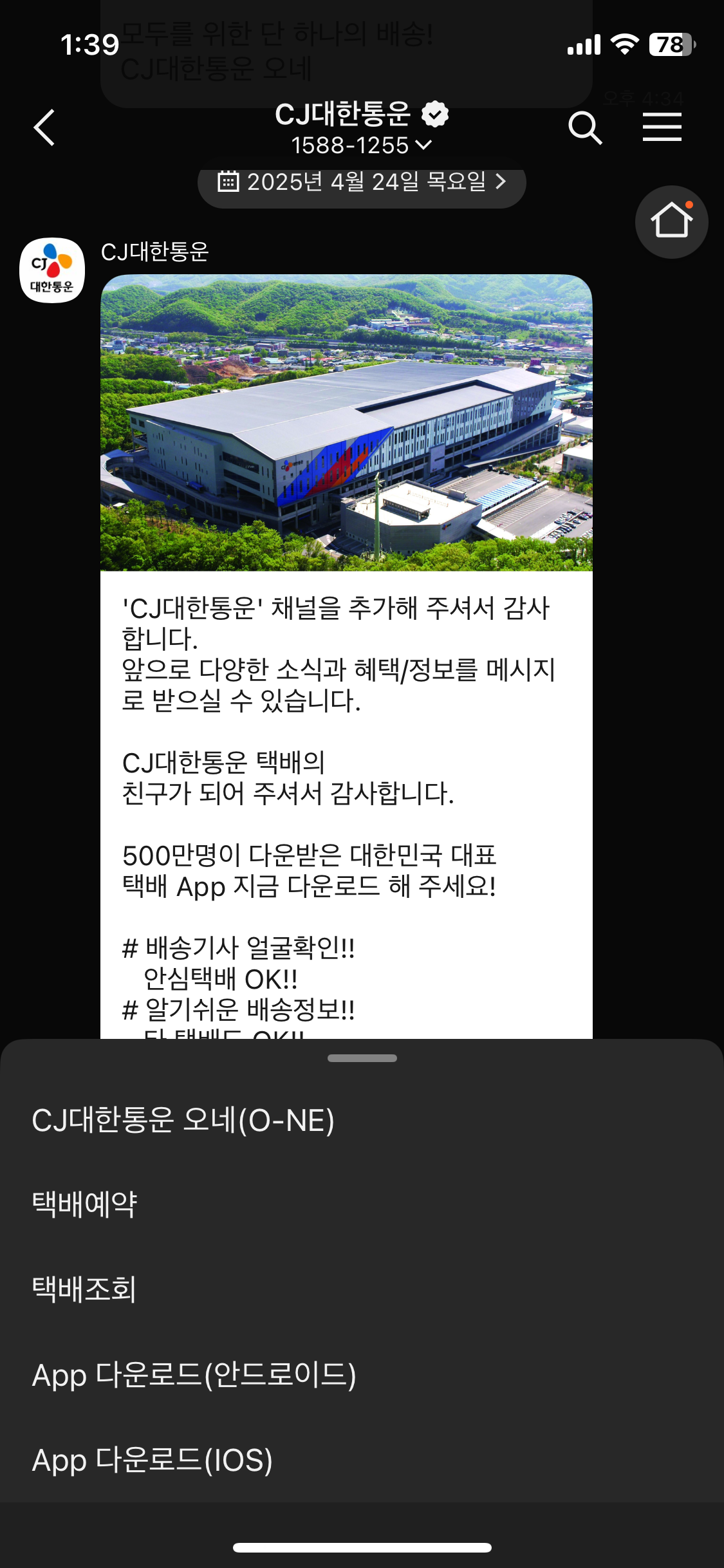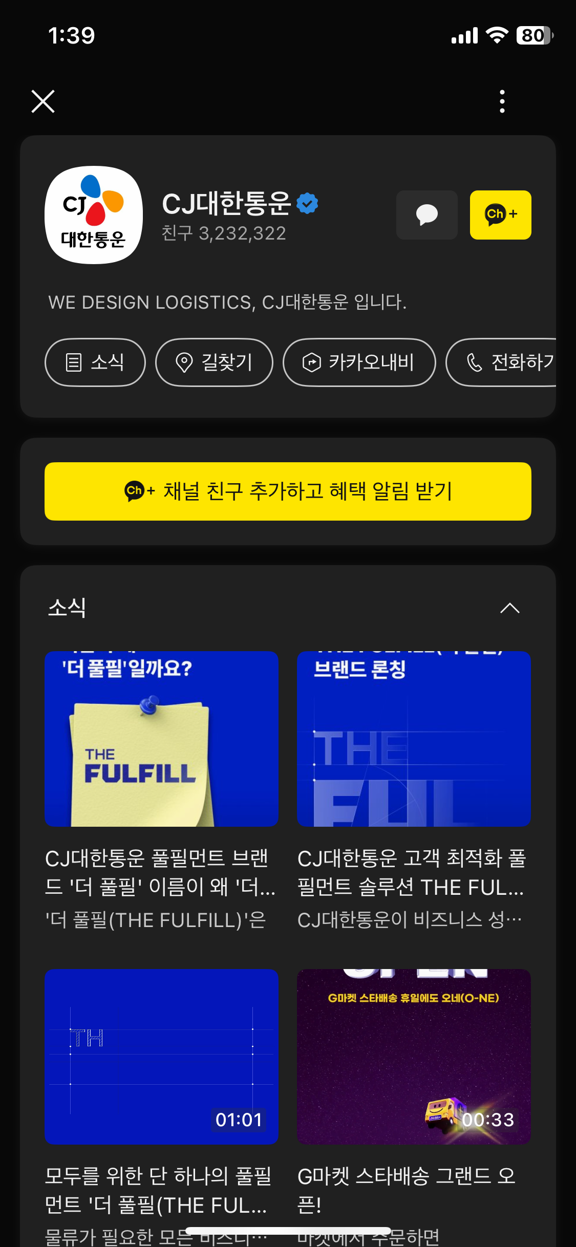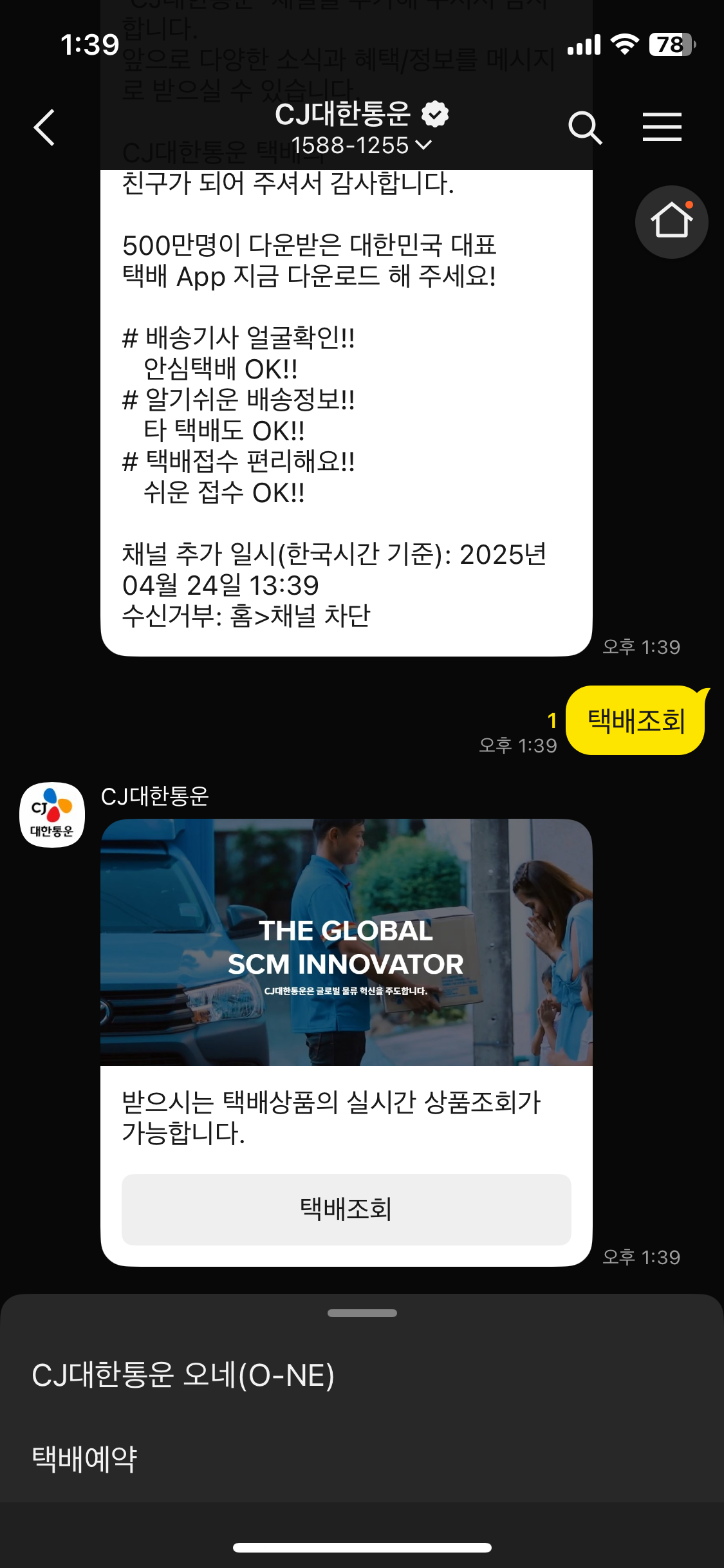- 카카오톡 실행 → ‘CJ대한통운’ 검색