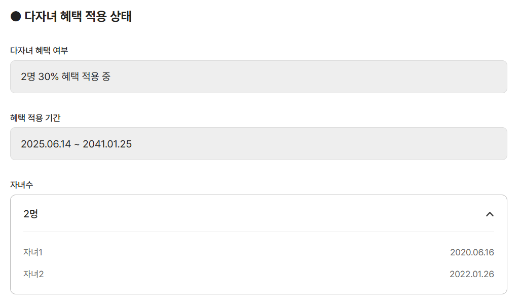 - 자녀 모두가 성년이면 혜택 적용 ❌