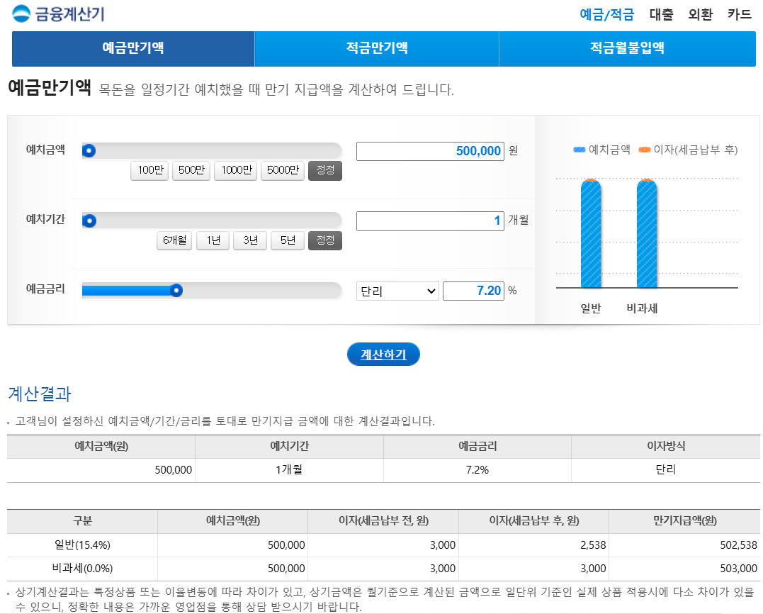 🧮 이자 계산 – 50만원 예치 시 얼마 받을까?